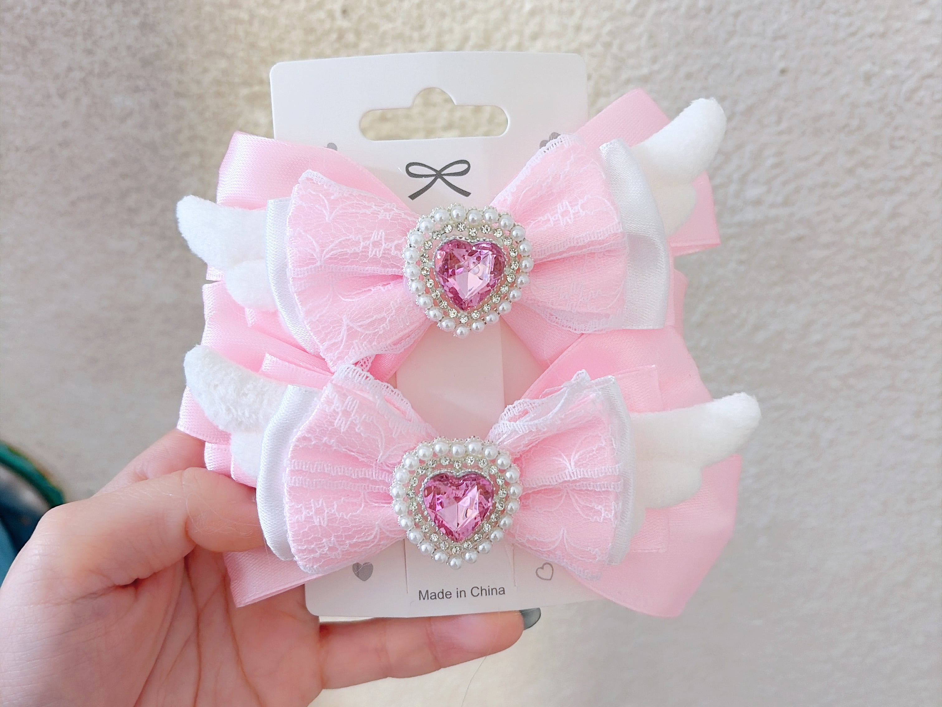 ピンク羽リボンクリップ